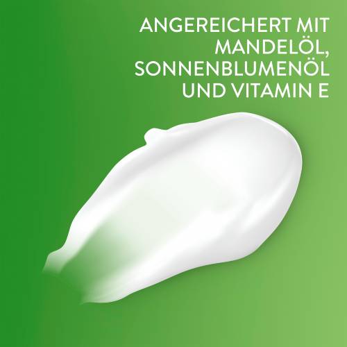 Die rückfettende Wirkung der Creme wird durch hochwertiges Mandelöl bewirkt. Glycerin und Vitamin E spenden der Haut nachhaltig Feuchtigkeit und schützen die Haut vor Umwelteinflüssen.