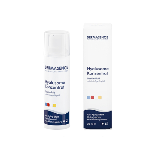 Die Dermasence Hyalusome Konzentrat Emulsion wird zur Pflege von reifer Haut und zur Reduzierung von Fältchen angewendet. Die Emulsion enthält eine Kombination aus Hyaluron, Liposomen, Jojobaöl, Vitamin A und E und Beta Glucan. Hyaluron und Liposome polstern die Haut auf und erhöhen ihre Elastizität. Vitamin A regt die Zellregeneration an. Vitamin E und Beta Glucan sind in der Lage die Haut umweltfit zu machen. Die Dermasence Hyalusome Konzentrat Emulsion kann Mimikfältchen glätten, vermindert einen Feuchtigkeitsverlust und unterstützt die Regeneration der Haut.