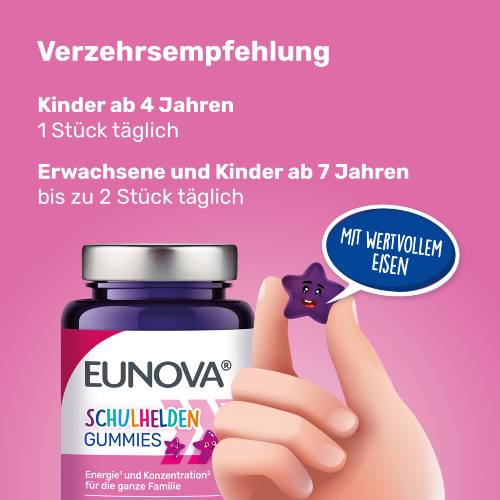 EUNOVA® SCHULHELDEN GUMMIES ENERGIE1 UND KONZENTRATION2 FÜR DIE GANZE FAMILIE