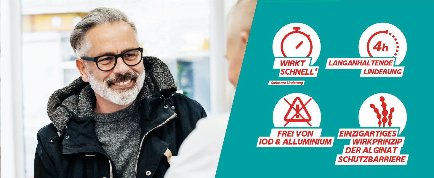Wenn eine Änderung des Lebensstils und der Verzicht auf säurehaltige Nahrungsmittel nicht genügt, hilft in aktuen Fällen Gaviscon Advance Suspension im Dosierbeutel 24x10 ml. Durch den bewährten, pflanzlichen Inhaltsstoff Alginat, der sich wie ein Schutzfilm auf den Mageninhalt legt, wird der saure Rückfluss verhindert. Magendruck, Sodbrennen und Reflux-Husten verschwinden bis zu 4 Stunden. Gaviscon Advance ist für seine gute Verträglichkeit bekannt und kann ohne Bedenken über die gesamte Schwangerschaft und Stillzeit hinweg angewendet werden.