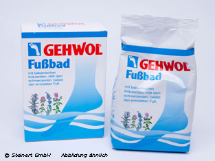 GEHWOL Fußbad hilft wehen, brennenden und schwitzenden Füßen. Es belebt müde Füße und beseitigt lästiges Fußbrennen. Hornhaut, Schwielen und Hühneraugen werden erweicht. Die Haut wird porentief gereinigt sie bleibt widerstandsfähig und geschmeidig. GEHWOL Fußbad desodoriert nachhaltig. Natürliche ätherische Öle aus Lavendel, Rosmarin und Thymian fördern die Durchblutung. Die Füße werden langanhaltend durchwärmt und belebt. Eine anschließende Behandlung der Füße mit GEHWOL pflegendes Fußdeo oder GEHWOL Balsam unterstützt die Wirkung.