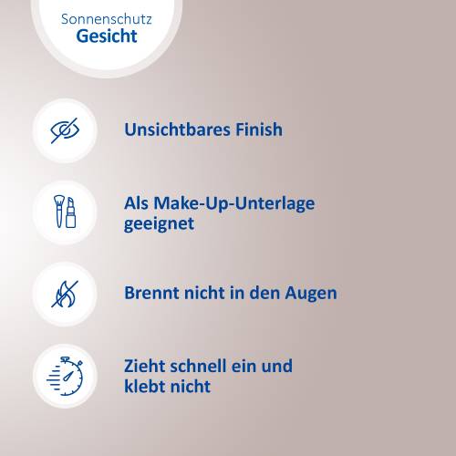 Dank ihrer leichten und pflegenden Rezeptur zieht die Sonnenschutz-Creme schnell ein und bietet eine ideale Grundlage für Make-Up. Sie schützt Ihre Haut effektiv vor sonnenbedingten Zellschäden und dank Anti-Pollution-Komplex aus Vitamin C & E vor oxidativem Stress und freien Radikalen. Die nicht komedogene Formel ist bei empfindlicher Haut, Mischhaut, sowie zu Akne neigender Haut gut geeignet. Die Creme legt sich sanft und unsichtbar auf die Haut, ohne Augenreizungen, Pilling-Effekte (Klumpen des Produktes auf der Haut) oder weiße Rückstände zu hinterlassen – so ist die Sonnenschutz-Creme der perfekte Begleiter im Alltag.