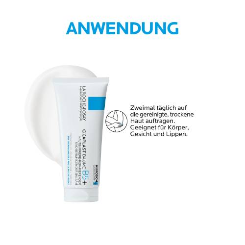 La Roche Posay CICAPLAST Baume B5+ für geschädigte und irritierte Haut kann bei verschiedenen Hautreizungen angewendet werden. Dabei eignet sich die reparierende Salbe für gereizte Haut am Körper, im Gesicht und an den Lippen bei Erwachsenen, Kindern und Babys. Vor der Verwendung sollte die Haut gereinigt werden und trocken sein. Anschließend kann die Wundsalbe auf die entsprechende Hautstelle aufgetragen, sanft verteilt und leicht einmassiert werden.